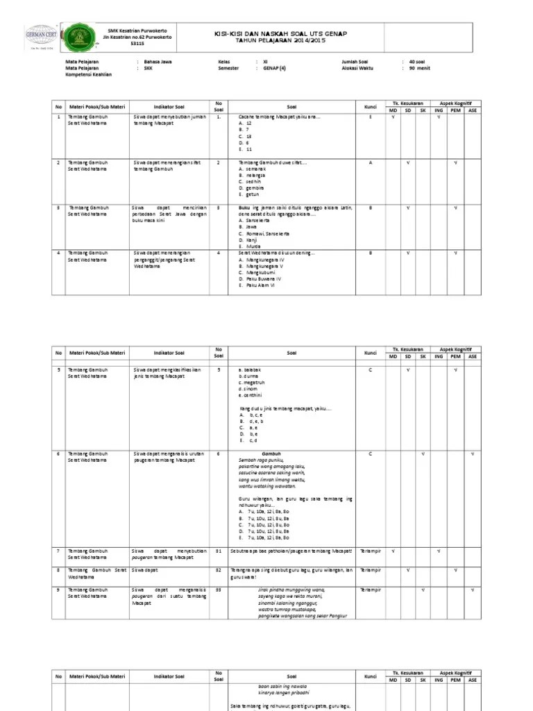 Contoh Soal Tembang Gambuh Kelas 11 - Tembang Gambuh Ana Pirang Gatra Kami - soal ulangan serat wedhatama pupuh gambuh kelas xi semester 2 contoh soal bahasa jepang kelas xii semester ganjil 20202021 soal ulangan harian bahasa jawa kelas xii smasmkma semester gasal dan jawabannya.. View contoh soal bahasa jawas.docx from sekolah 0853636055 at smk negeri 2 klaten. tembang gambuh serat wedhatama dan artinya. soal ulangan serat wedhatama pupuh gambuh kelas xi semester 2 contoh soal bahasa jepang kelas xii semester ganjil 20202021 soal ulangan harian bahasa jawa kelas xii smasmkma semester gasal dan jawabannya. soal pkn kelas 10 semester 2 soal pilihan ganda 1. Kepiye guru lagu lan guru wilangan tembang gambuh!